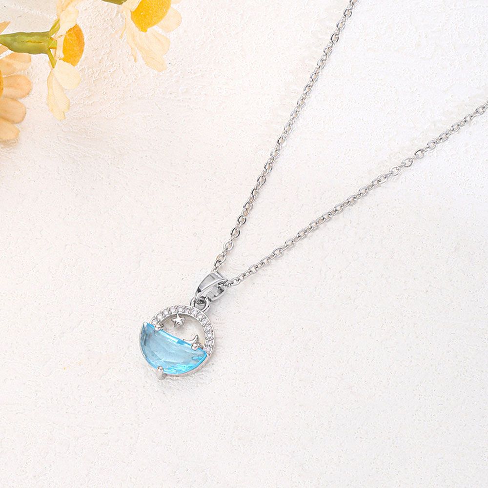 Γυναικείο Κολιέ Με Κρεμαστή θαλασσα Φεγγάρι Και Αστέρι Και Διακριτικές Πέτρες Ατσάλινη Αλυσίδα Χαλκός Κρεμαστό Μήκος Αλυσίδας40.0 cm Προέκταση Αλυσίδας 5.0cm Κρεμαστό 1.3cm