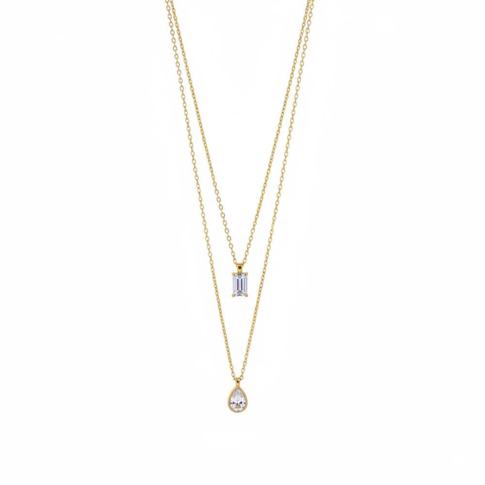 Κολιέ διπλή αλυσίδα με ορθογώνια & δάκρυ ζιργκόν