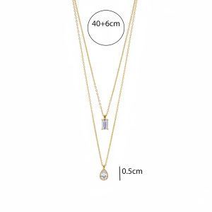 • Κολιέ διπλή αλυσίδα με ορθογώνια & δάκρυ ζιργκόνA3889