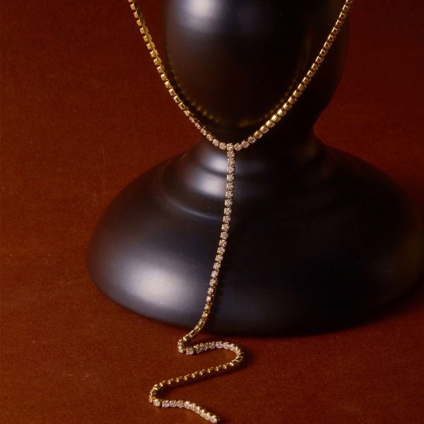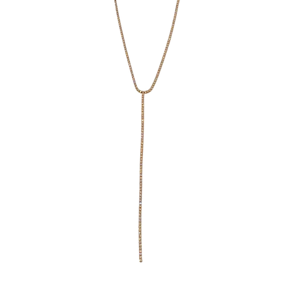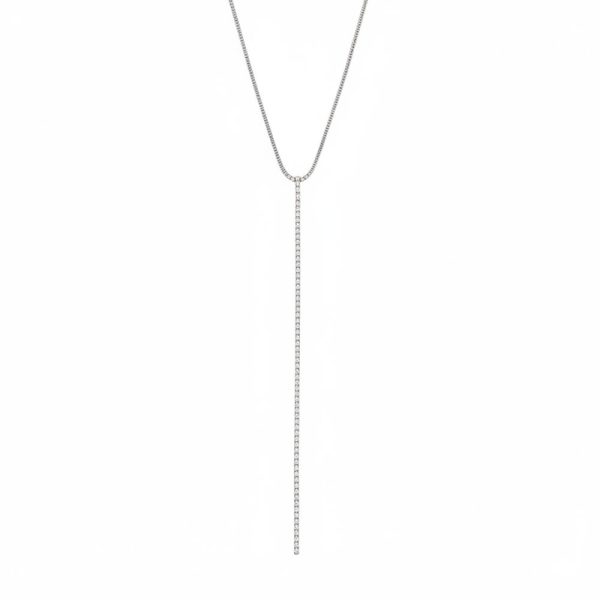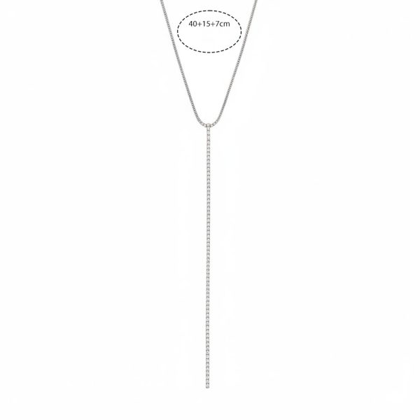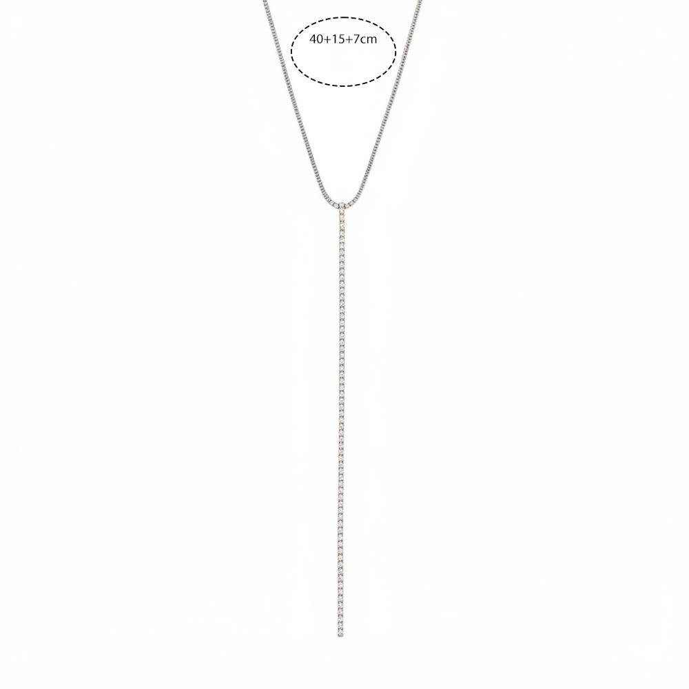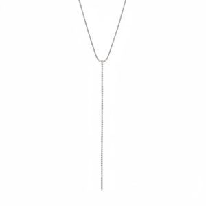 Κομψό και λαμπερό ατσάλινο μακρύ κολιέ με σειρά από ζιργκόν που χαρίζουν διακριτική πολυτέλεια σε κάθε εμφάνιση. Ο elegant σχεδιασμός του σε σχήμα “Y” το κάνει ιδανικό για να αναδείξει το ντεκολτέ και να συνδυαστεί τόσο με casual όσο και με βραδινά looks.Κατασκευασμένο από ανοξείδωτο ατσάλι που δεν μαυρίζει, προσφέρει λάμψη και ανθεκτικότητα που διαρκεί.