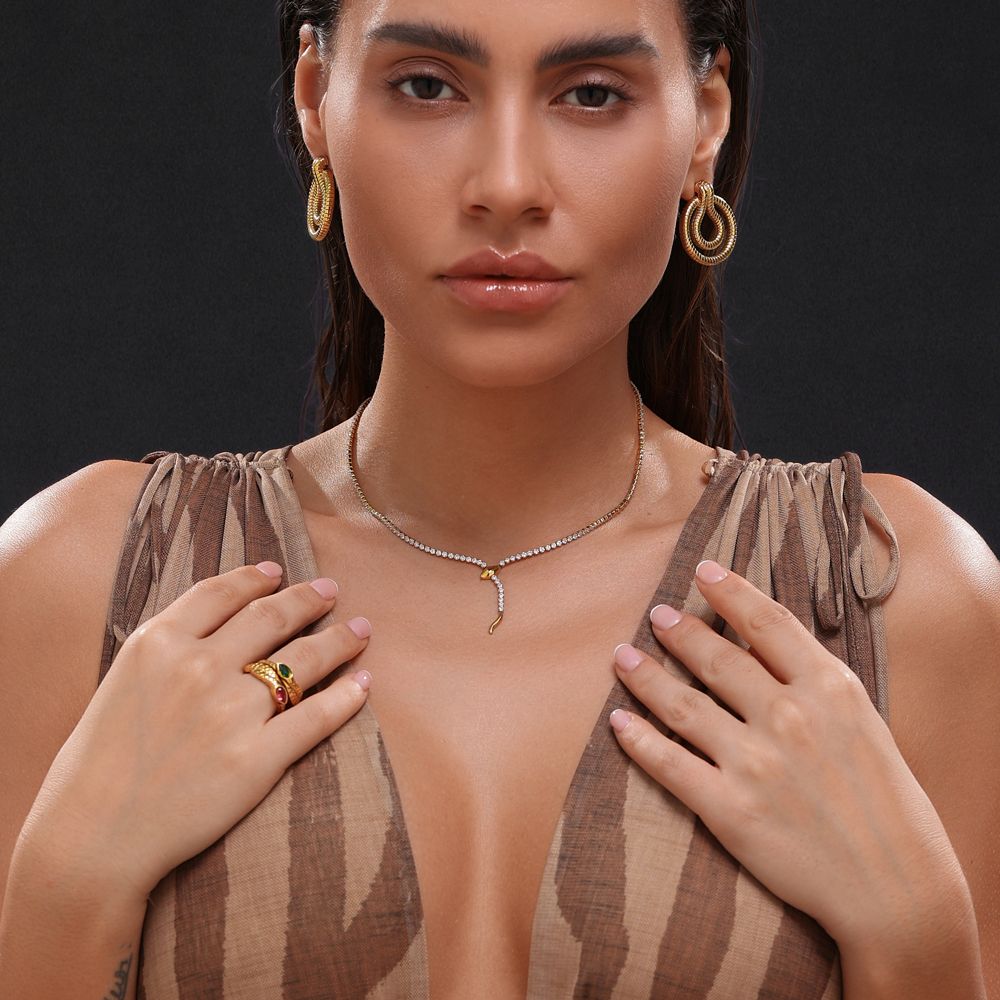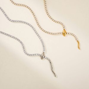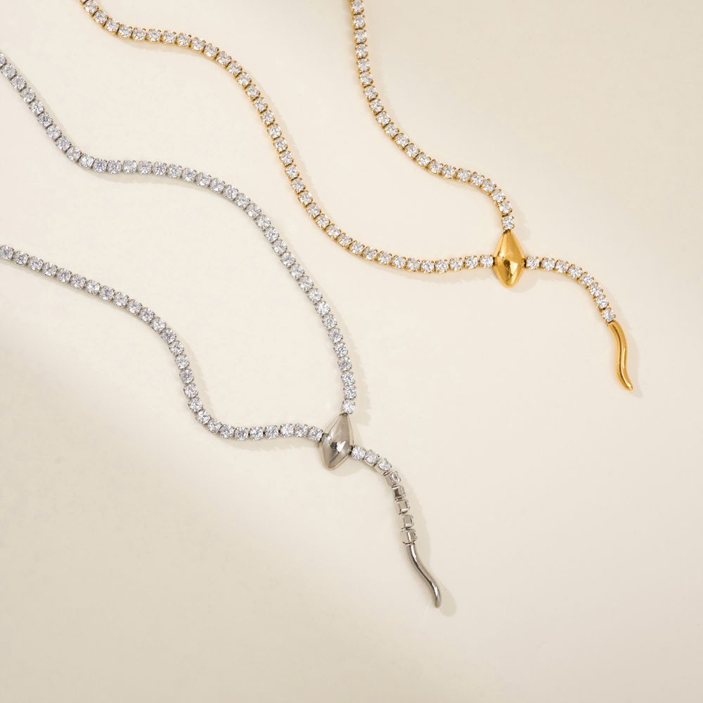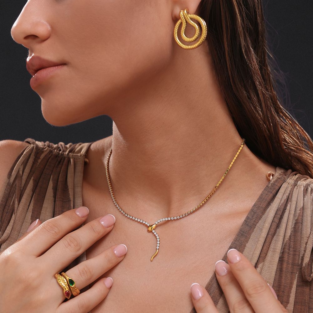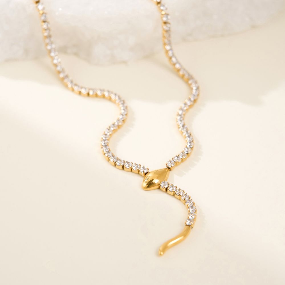 • Ατσάλινο Κολιέ με Σχέδιο Φίδι και Ζιργκόν - ΧρυσόA3912A