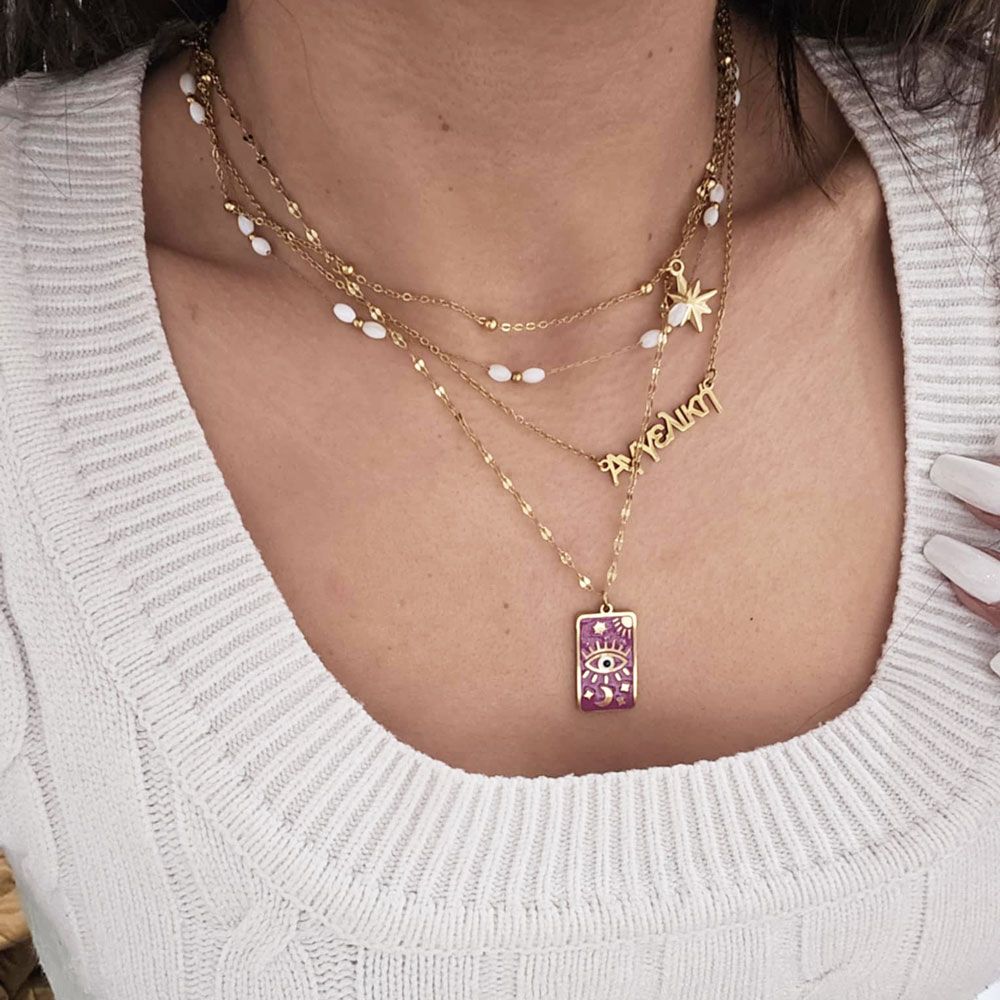 • Ατσάλινο Κολιέ Με Ορθογώνιο Μοτιφ Και Ματάκι - ΧρυσόX0099A