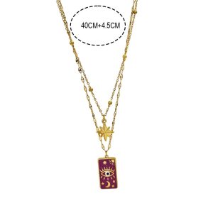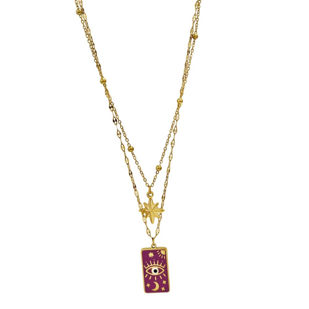 Ατσάλινο Κολιέ Με Διπλή Αλυσίδα Και Πέτρα Φίλντισι Με Ματάκι - ΧρυσόA31012