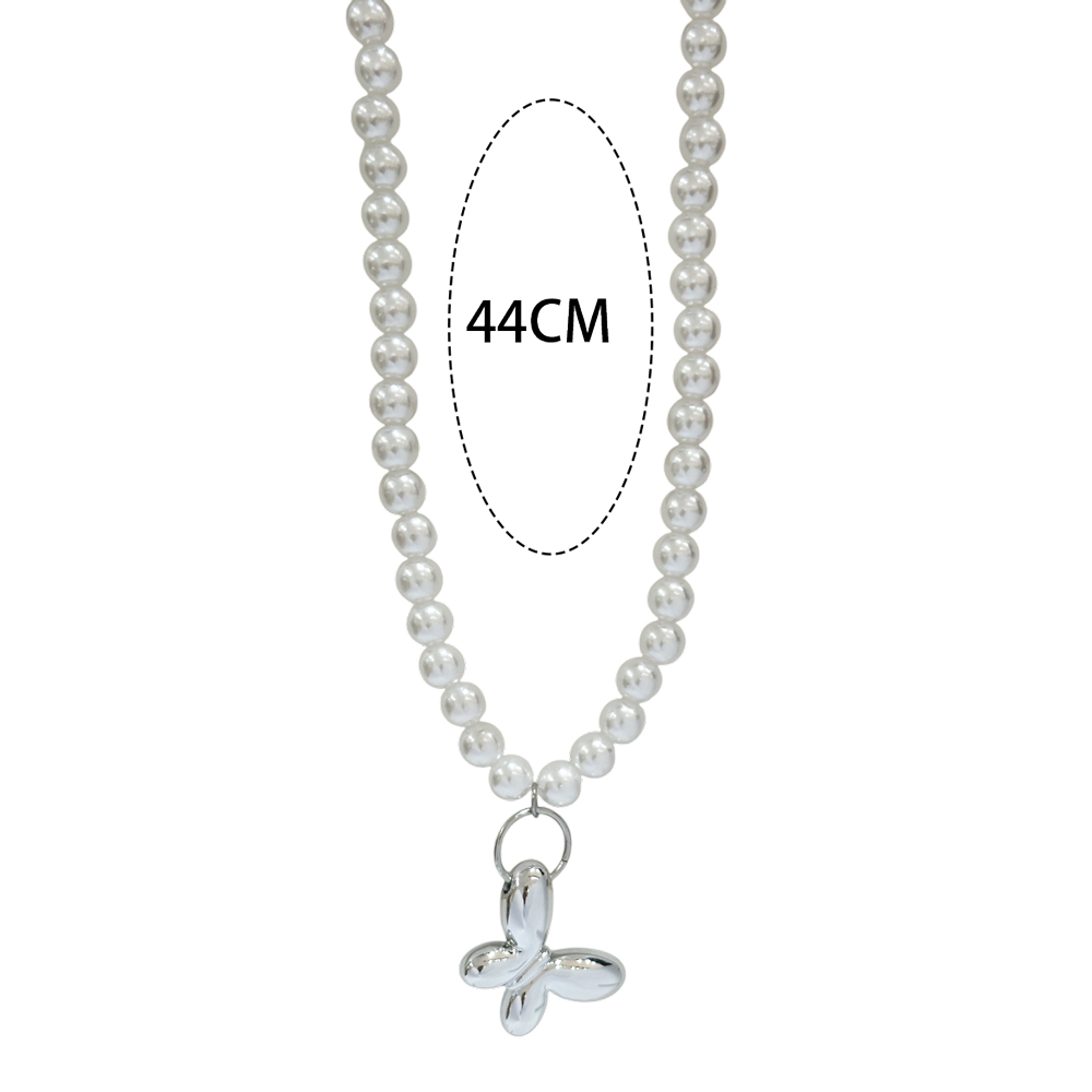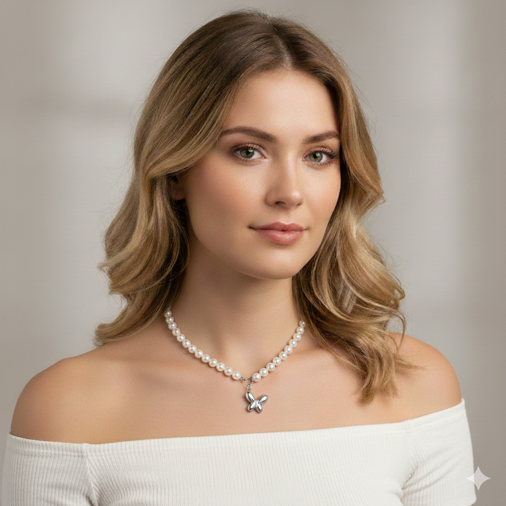 Κομψό κολιέ από ανοξείδωτο ατσάλι, διακοσμημένο με λαμπερές λευκές πέρλες και κρεμαστή πλαστική πεταλούδα. Ο νεανικός και μοντέρνος σχεδιασμός του προσθέτει παιχνιδιάρικο χαρακτήρα, ιδανικό για καθημερινές εμφανίσεις. Μια υπέροχη επιλογή για όσους αγαπούν τα ιδιαίτερα αξεσουάρ. Μήκος Αλυσίδας: 44εκ. Προέκταση: 5 εκ.