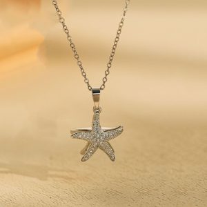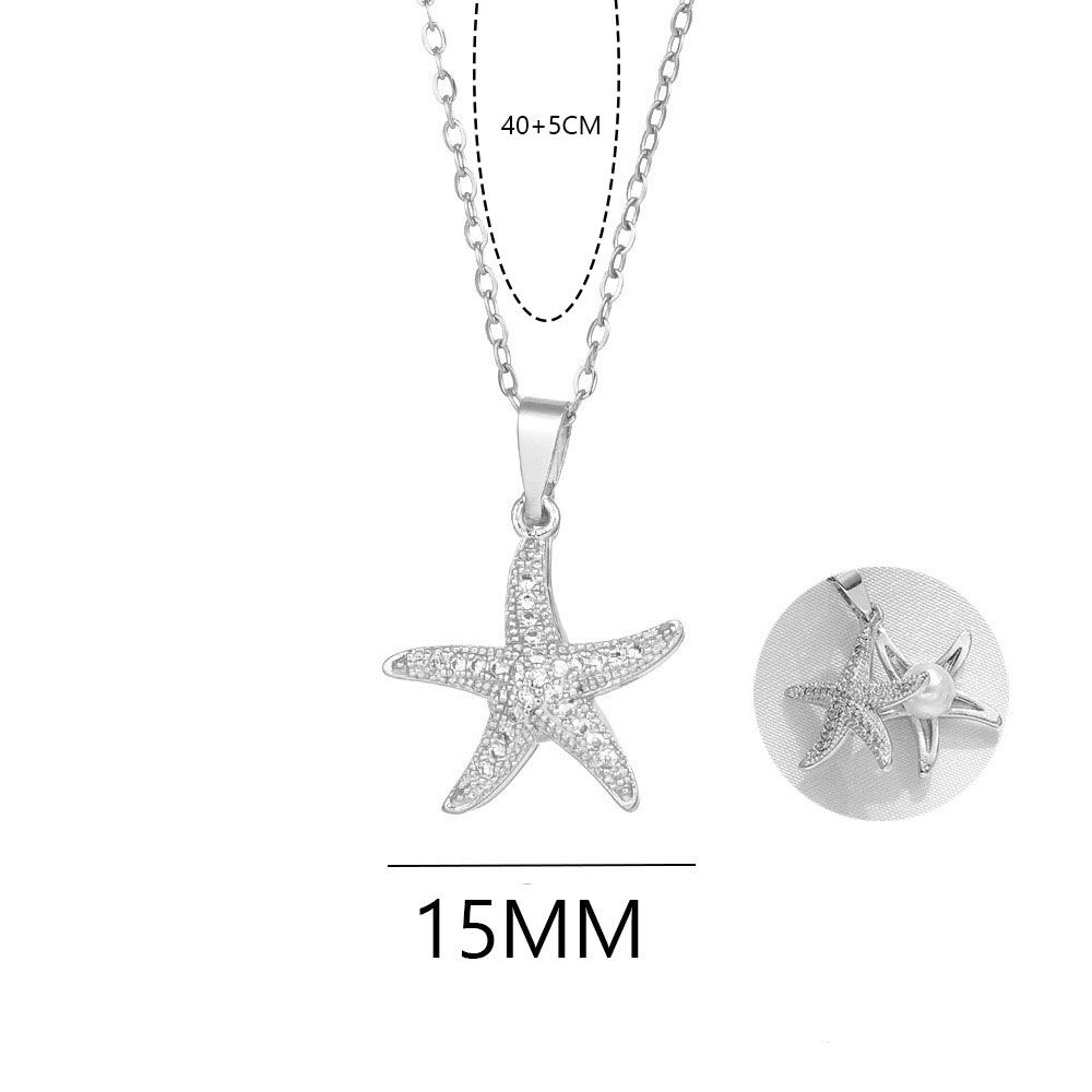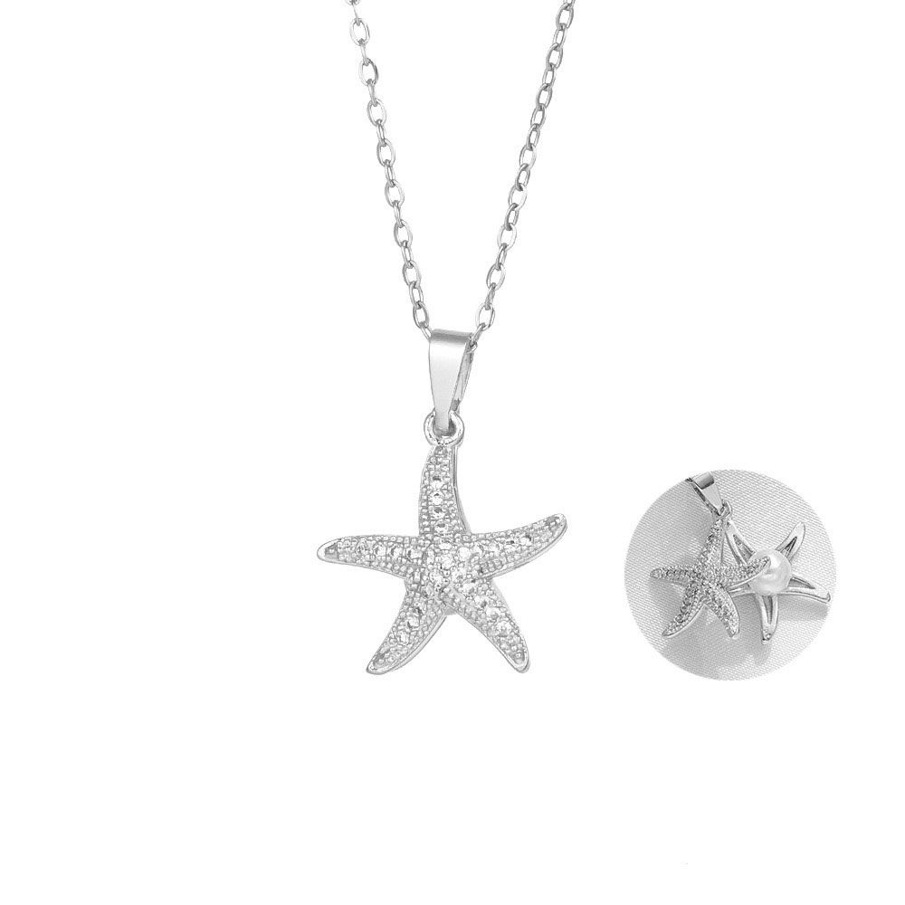 Γυναικείο Κολιέ Αστερίας Με Kρυφό”Μαργαριτάρι” Ατσάλινη Αλυσίδα Χαλκός Κρεμαστό Μήκος Αλυσίδας40.0 cm Προέκταση Αλυσίδας 5.0cm Κρεμαστό 15mm