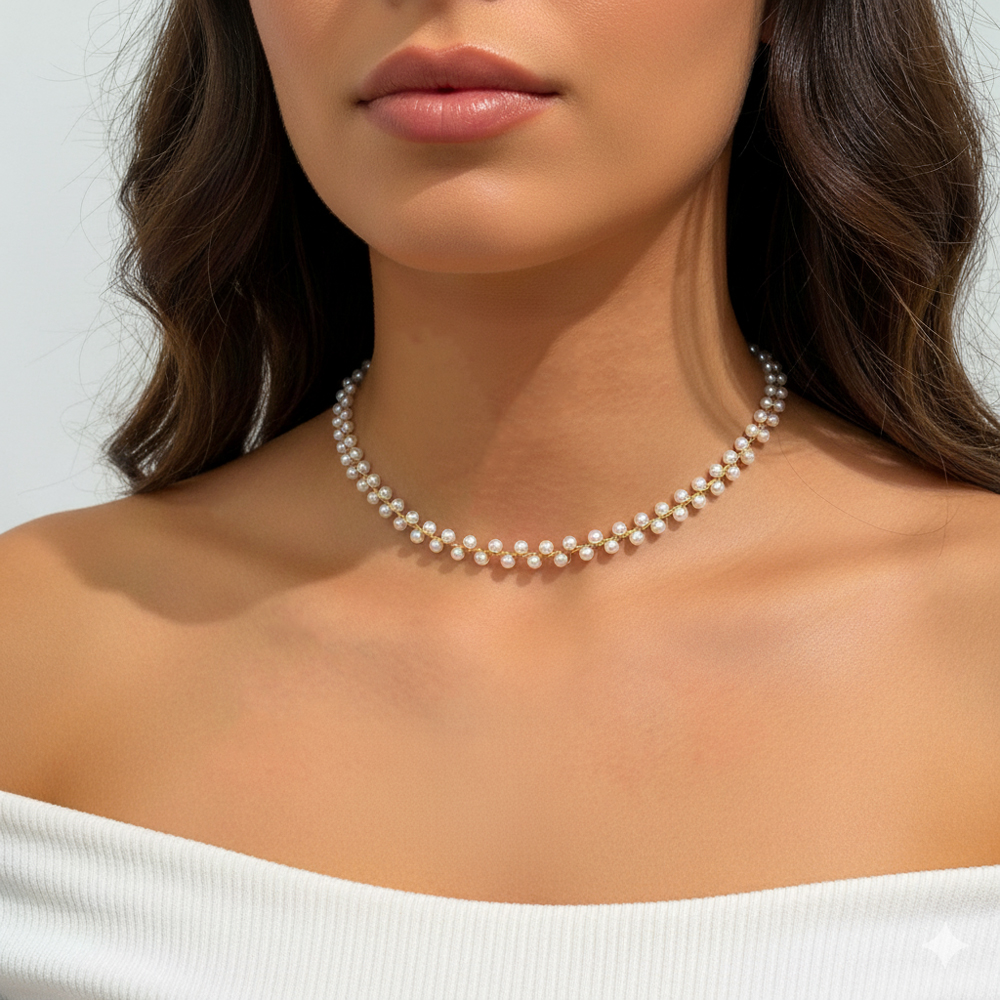 Εντυπωσιακό και θηλυκό κολιέ από ατσάλι σε χρυσή απόχρωση, διακοσμημένο σε όλο του το μήκος με πολλές λευκές πέρλες που δημιουργούν ένα κομψό και λαμπερό αποτέλεσμα. Ιδανικό για να αναβαθμίσει κάθε εμφάνιση, από καθημερινή έως πιο επίσημη, προσφέροντας διαχρονική κομψότητα και ρομαντική διάθεση. Ανθεκτικό, αντιαλλεργικό και ελαφρύ, αποτελεί μια υπέροχη επιλογή για δώρο ή για να προσθέσετε ένα statement κομμάτι στη συλλογή σας. Μήκος Αλυσίδας: 39 εκ. Προέκταση: 6 εκ.