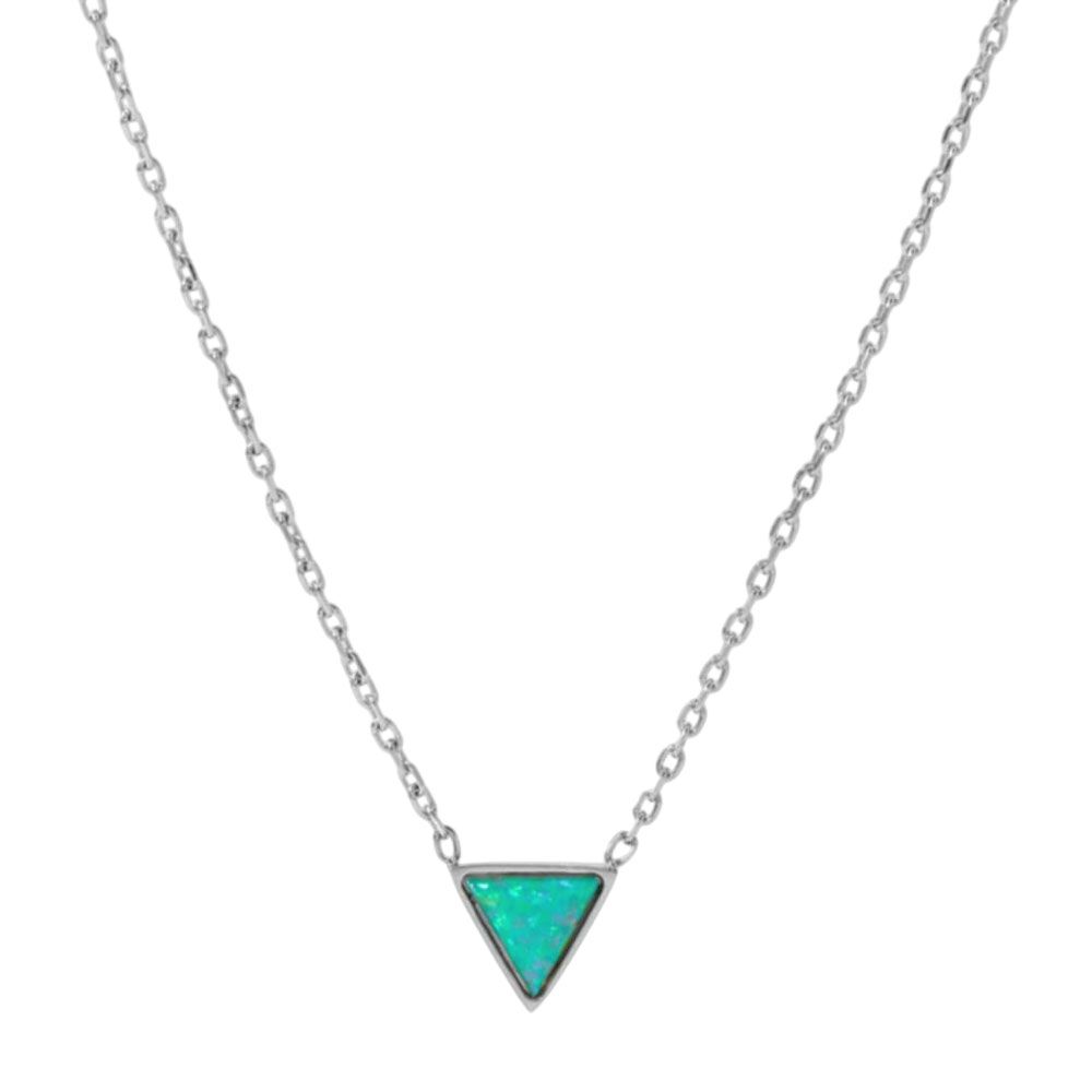 • Ατσάλινο Κολιέ Κρεμαστό Τρίγωνο Με Πράσινη Πέτρα - ΧρυσόA3688A
