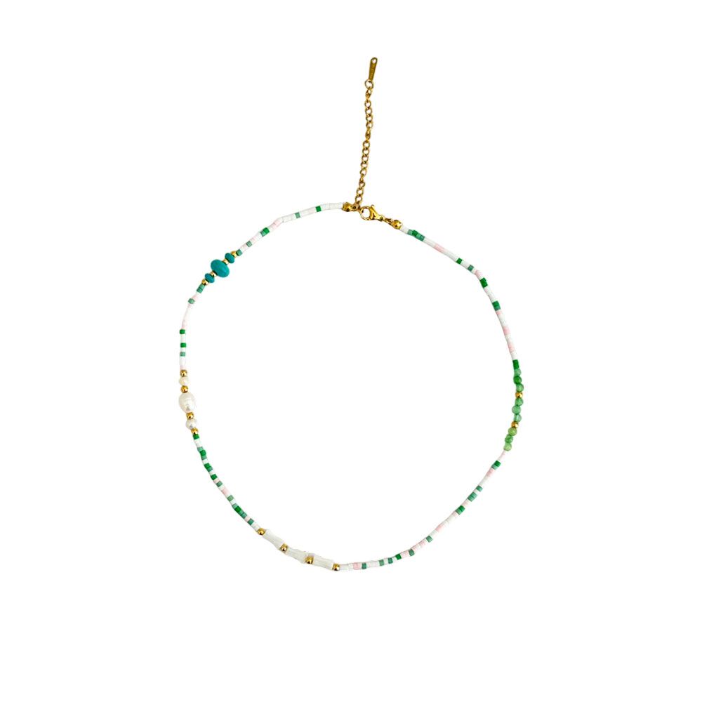 Kολιέ αποτελούμενο απο χάντες με άκρως καλοκαιρινή διάθεση. Διαθέτει αυξομείωση και μπορείτε να καθορίσετε το ύψος του . Υλικό αλυσίδας Ατσάλι Μήκος Αλυσίδας: 43 εκ. Προέκταση: 5 εκ.