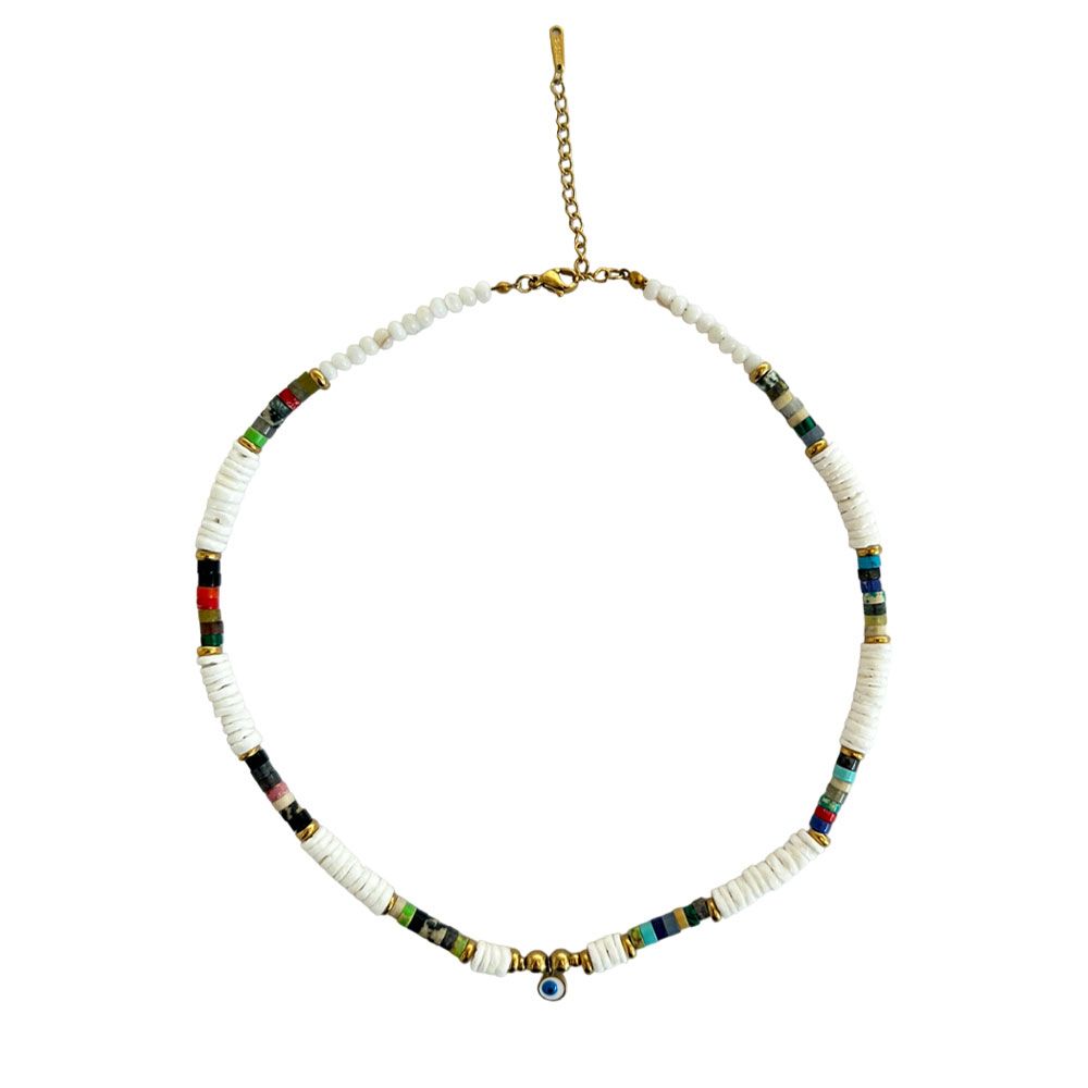 Kολιέ αποτελούμενο απο χάντες με άκρως καλοκαιρινή διάθεση. Διαθέτει αυξομείωση και μπορείτε να καθορίσετε το ύψος του . Υλικό αλυσίδας Ατσάλι Μήκος Αλυσίδας: 43 εκ. Προέκταση: 5 εκ.
