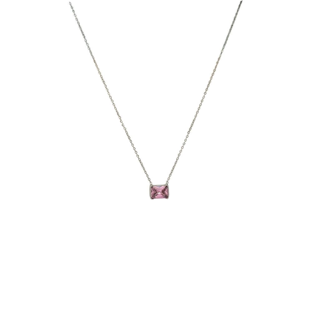 • Ατσάλινο Κολιέ Με Χρωματιστή Πέτρα - Ασημί ΡοζA3110BPK