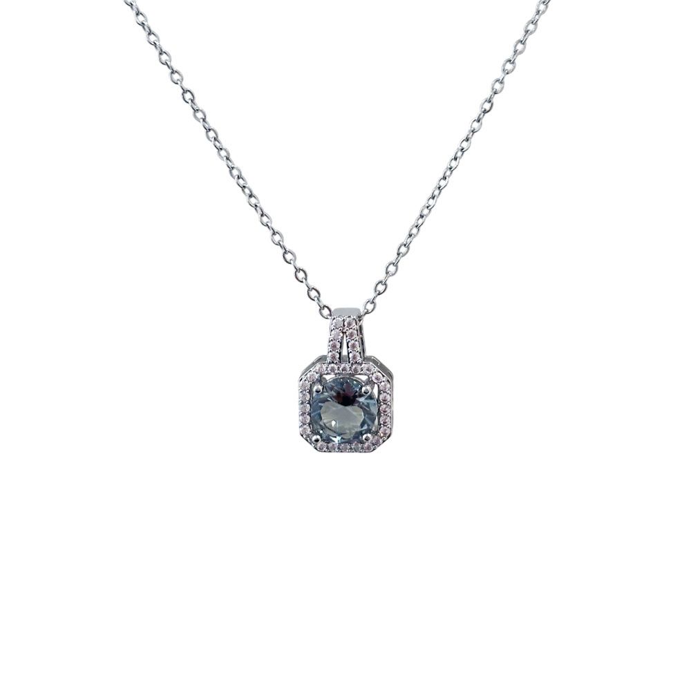 Κολιέ Με Κρεμαστή Τετράγωνη Ροζέτα Και Πέτρα - Ασημί ΜπλεA033-5