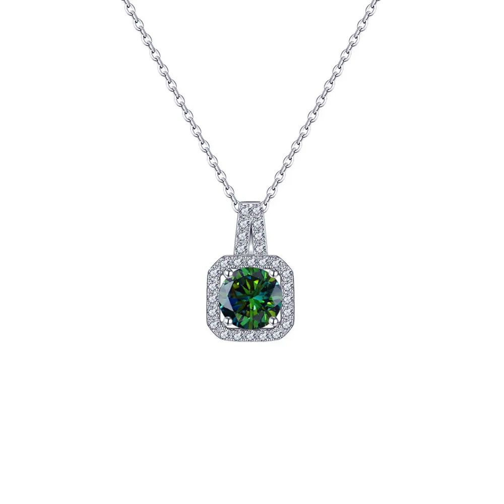Κολιέ Με Κρεμαστή Τετράγωνη Ροζέτα Και Πέτρα - Ασημί ΜπλεA033-5