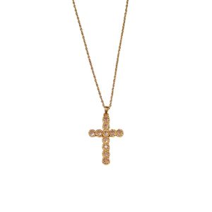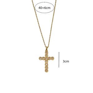 Ατσάλινο Κολιέ με Κρεμαστό Σταυρό Ζιργκόν – Χρυσό