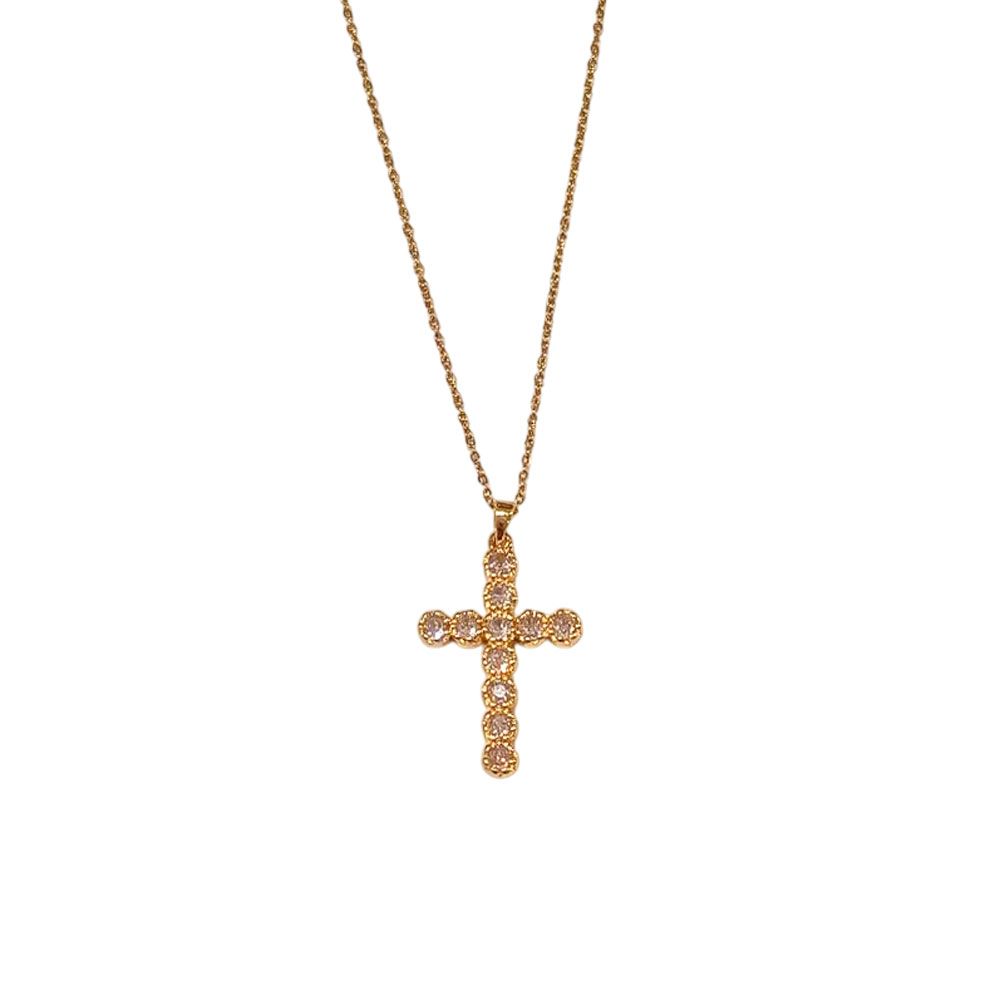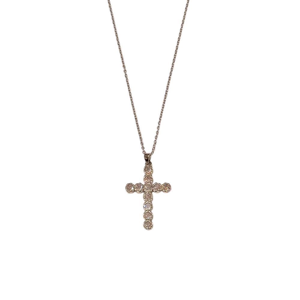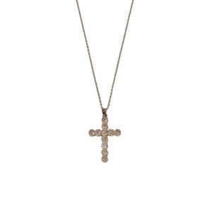 Κομψό ατσάλινο κολιέ με εντυπωσιακό σταυρό από χαλκό, διακοσμημένο με λαμπερά στρας.Ο συνδυασμός της ανθεκτικής ατσάλινης αλυσίδας με το φωτεινό σταυρό δημιουργεί ένα διαχρονικό και λαμπερό κόσμημα, ιδανικό για κάθε περίσταση.Η αλυσίδα είναι υποαλλεργική και δεν μαυρίζει.Διατίθεται σε χρυσό και ασημί χρώμα.