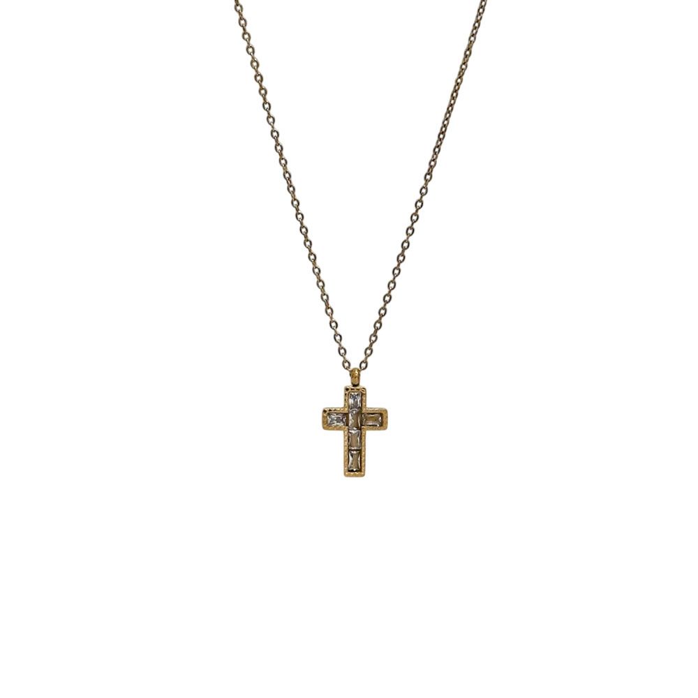 Ατσάλινο Κολιέ Σταυρός με Ζιργκόν – Χρυσό