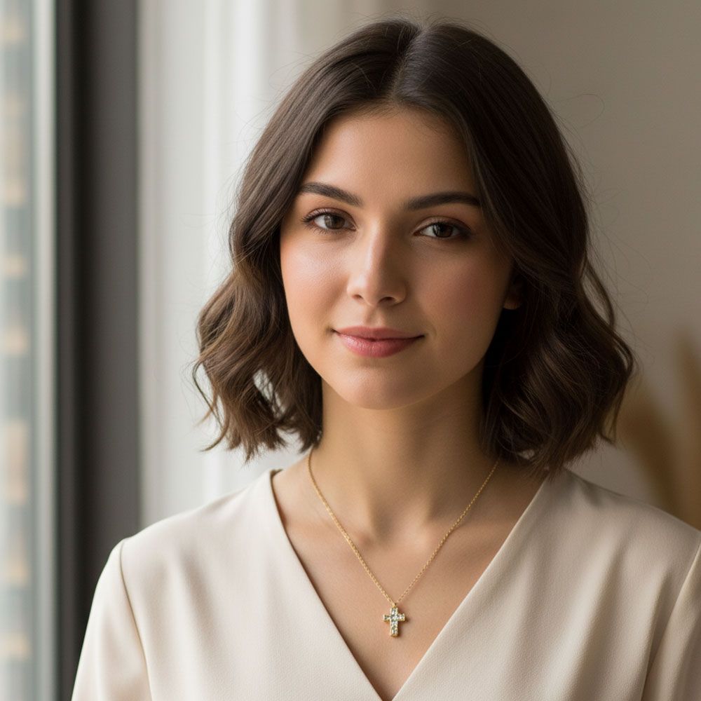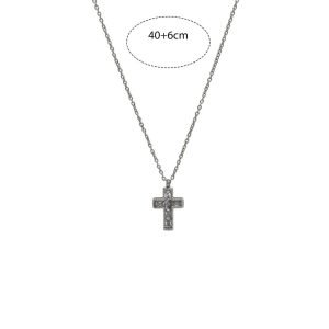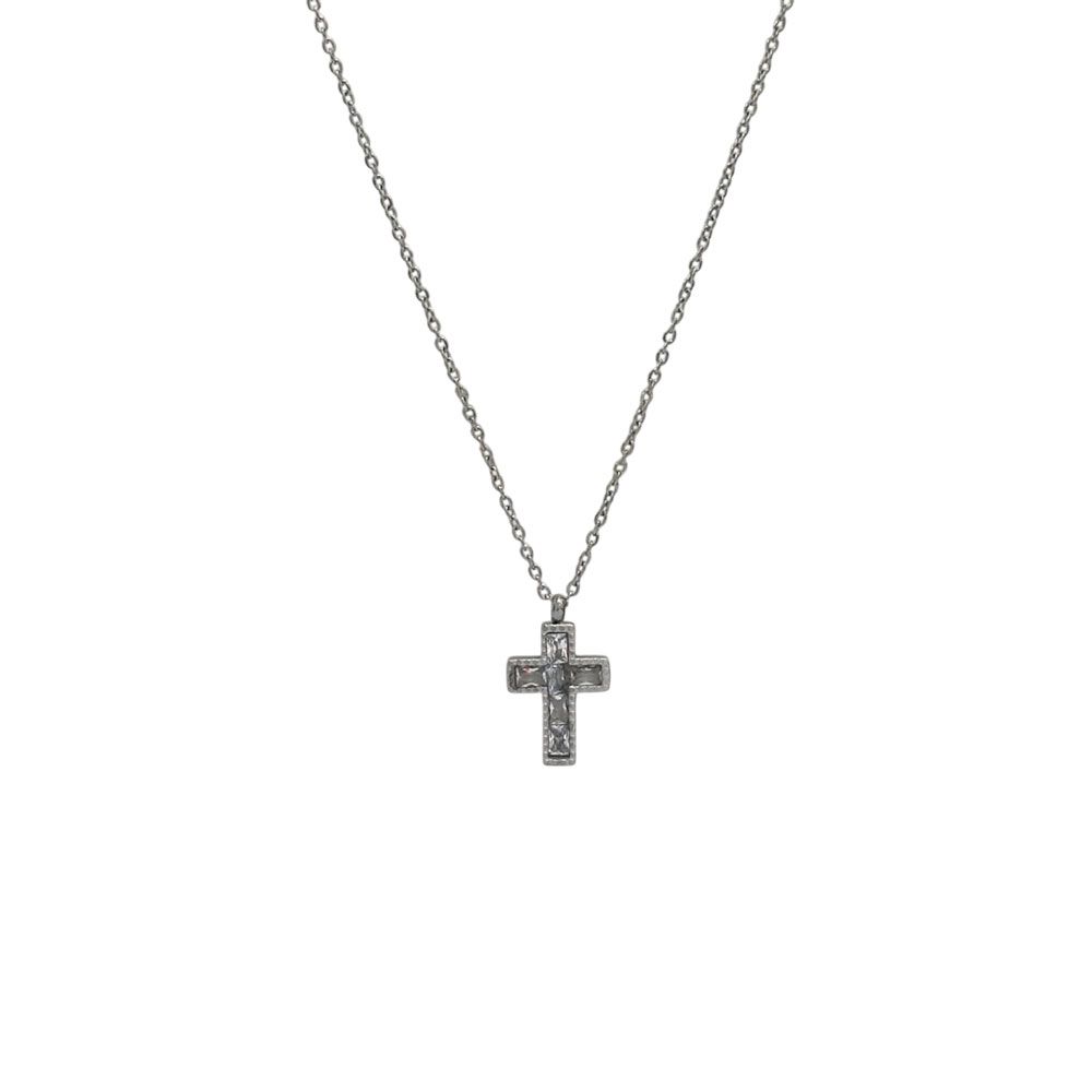 Κομψό και λαμπερό κολιέ από ανοξείδωτο ατσάλι με σταυρό διακοσμημένο με ζιργκόν, που προσθέτουν διακριτική πολυτέλεια και φινέτσα σε κάθε εμφάνιση.Ο minimal σχεδιασμός του το καθιστά ιδανικό τόσο για καθημερινή χρήση όσο και για πιο ιδιαίτερες περιστάσεις.Δεν μαυρίζει και διατηρεί τη λάμψη του χάρη στην ανθεκτική ποιότητα του ατσαλιού.