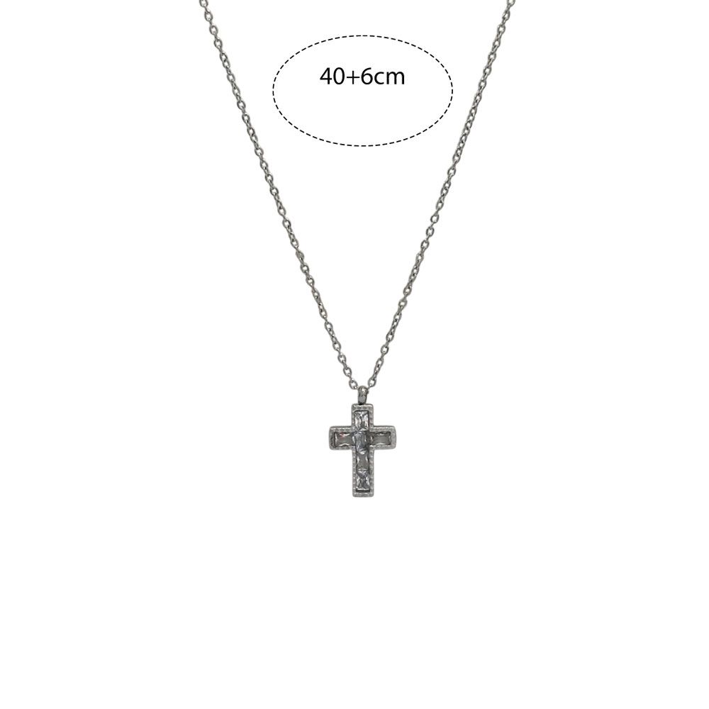 Stainless Steel Κολιέ με Μικρό Σταυρό και Ζιργκόν - ΧρυσόA31110A