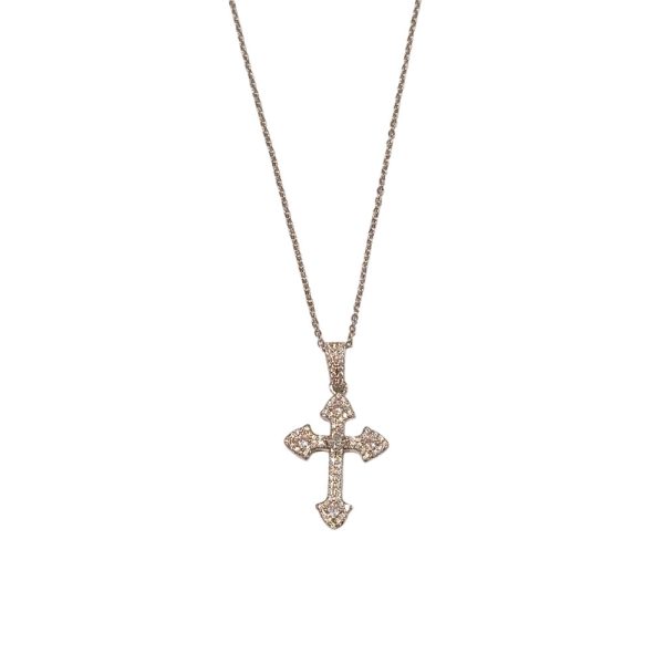 Εντυπωσιακό ατσάλινο κολιέ με σταυρό τύπου “βέλος”, διακοσμημένο με λαμπερά στρας.Ένα κομψό κόσμημα που προσθέτει λάμψη και χαρακτήρα σε κάθε εμφάνιση.Η ατσάλινη αλυσίδα είναι ανθεκτική, υποαλλεργική και δεν μαυρίζει.Διατίθεται σε χρυσό και ασημί χρώμα.