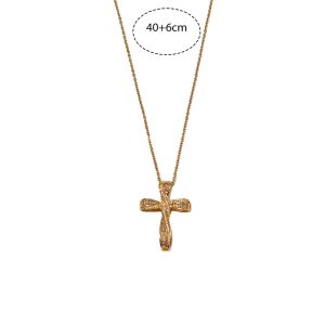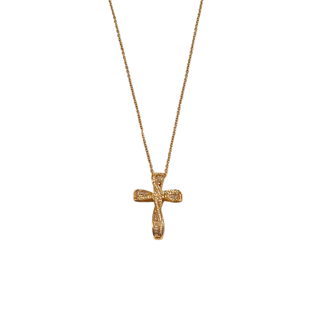 Ατσάλινο Κολιέ με Μικρό Σταυρό Στρας - ΧρυσόA31099A