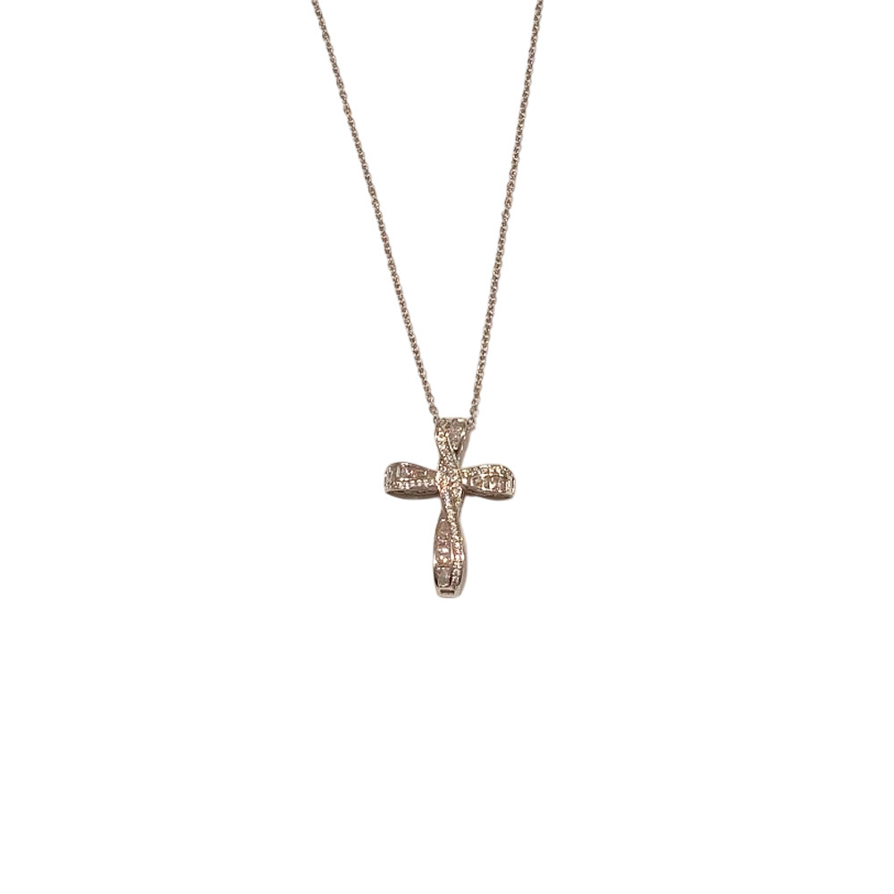 Κολιέ με Ατσάλινη Αλυσίδα & Σταυρό με Ζιργκόν – Ασημί