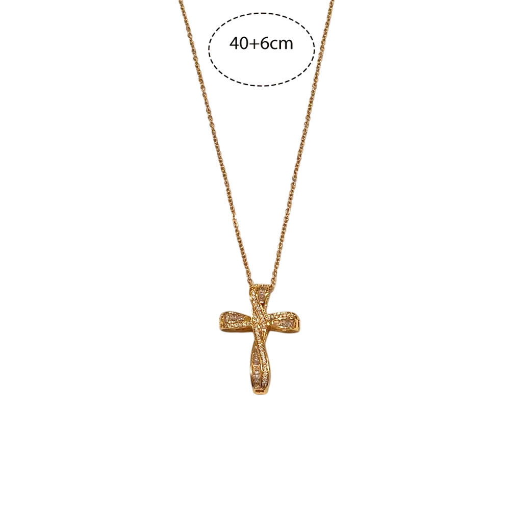 Κολιέ με Ατσάλινη Αλυσίδα & Σταυρό με Ζιργκόν - ΧρυσόA64011A