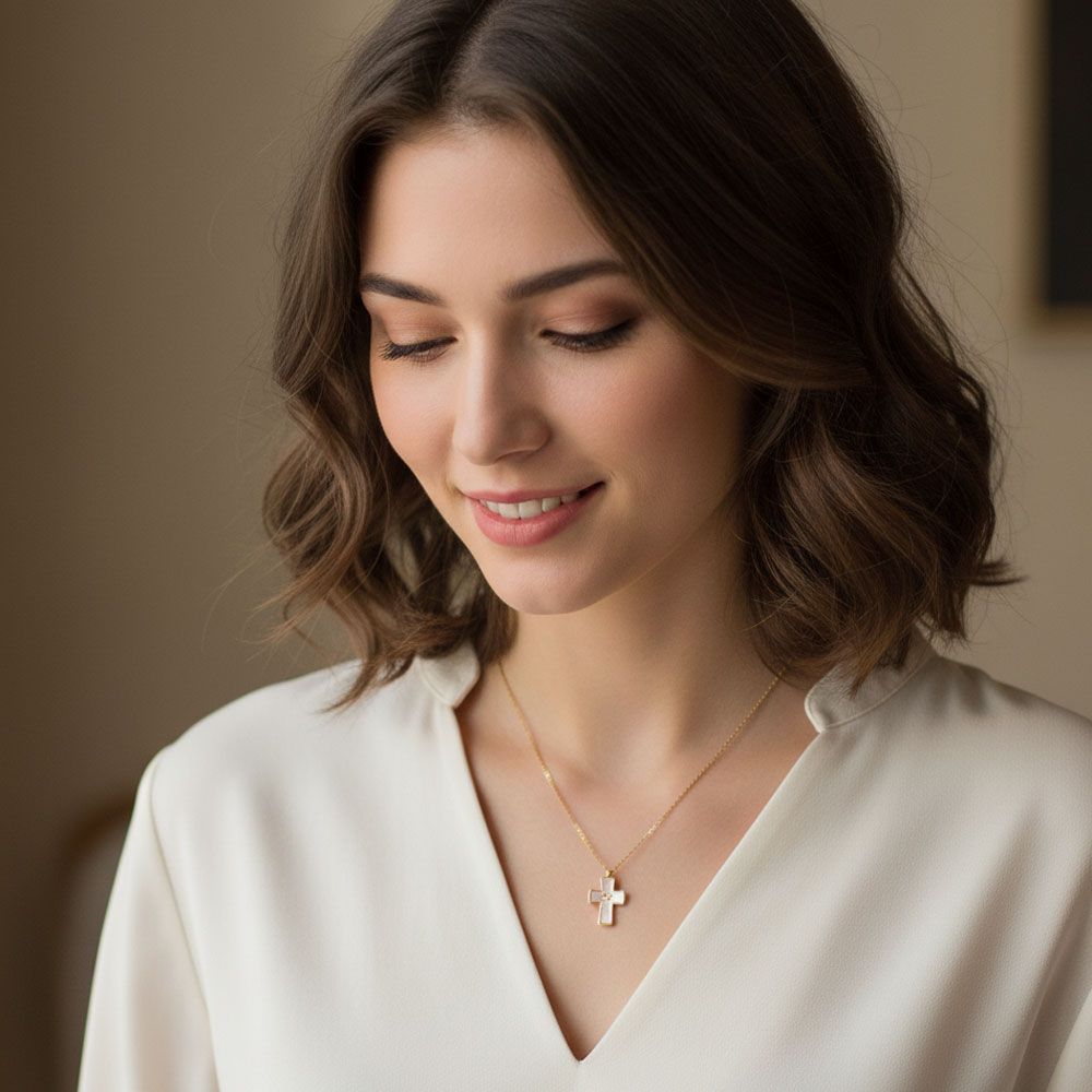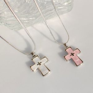Κομψό κολιέ με σταυρό από ανθεκτικό ατσάλι, ιδανικό για καθημερινή χρήση ή ως διακριτικό σύμβολο πίστης. Ο σταυρός διαθέτει γυαλιστερή επιφάνεια από φίλντισι σε ροζ ή λευκή απόχρωση, προσδίδοντας διακριτική λάμψη και κομψότητα.Το ατσάλι εξασφαλίζει ανθεκτικότητα στον χρόνο και δεν μαυρίζει, ενώ η αλυσίδα εφαρμόζει όμορφα στον λαιμό, αναδεικνύοντας το μενταγιόν.Ιδανικό δώρο για κάθε περίσταση.
