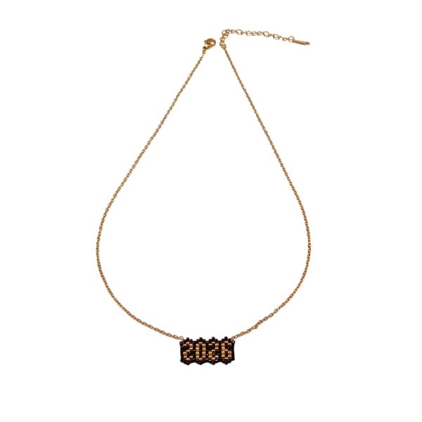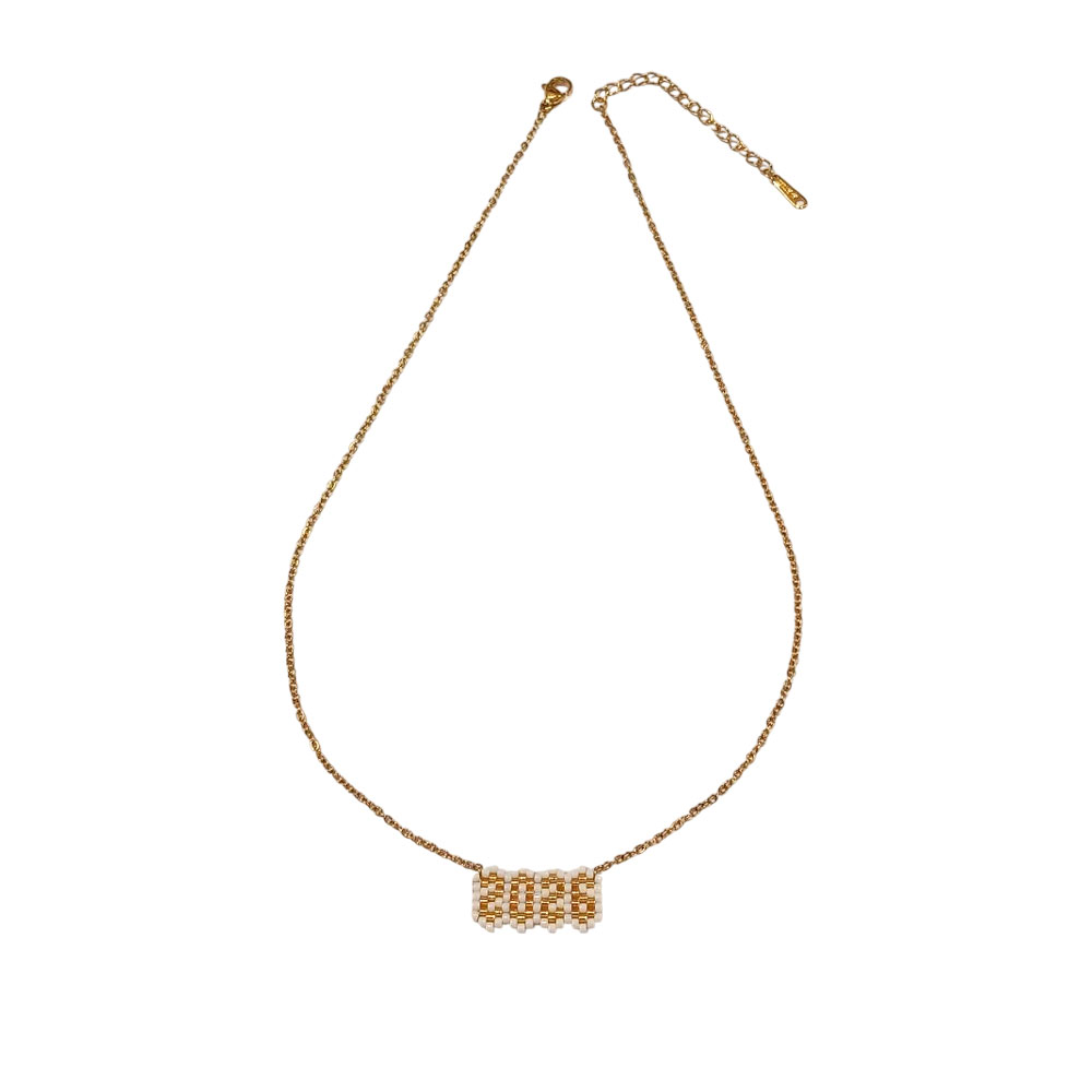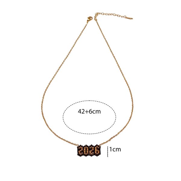 Ατσάλινο κολιέ με λεπτή χρυσή αλυσίδα και μοτίφ “2026” από χειροποίητες χάντρες Miyuki.Μοντέρνο και συμβολικό σχέδιο για τη νέα χρονιά, διαθέσιμο σε μαύρο, κόκκινο ή λευκό χρώμα.Ιδανικό για να φορεθεί μόνο του ή σε layering με άλλα κολιέ.Μήκος αλυσίδας 42+6cm για τέλεια εφαρμογή.