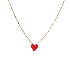 Κομψό κολιέ από ανοξείδωτο ατσάλι με κεντρικό μοτίφ καρδιά φτιαγμένο με χάντρες Miyuki. Ένα ιδιαίτερο χειροποίητο σχέδιο που συνδυάζει μίνιμαλ αισθητική με παιχνιδιάρικο χαρακτήρα. Ιδανικό για καθημερινές εμφανίσεις αλλά και ως ένα διακριτικό δώρο που εκφράζει αγάπη. Διατίθεται σε διάφορα χρώματα (λευκό, κόκκινο, ροζ, τυρκουάζ, χρυσό).