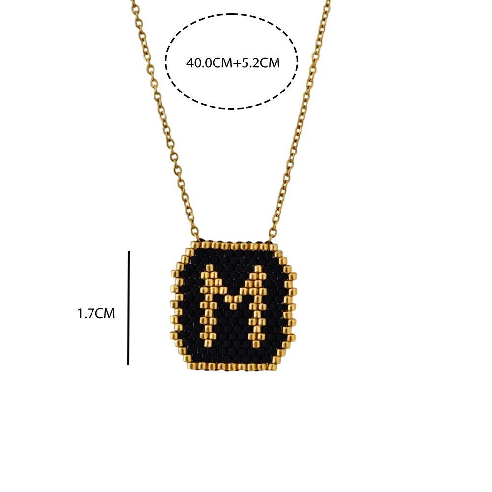 Ατσάλινο Μονόγραμμα ”M” Με Μαύρες Και Χρυσές Χάντρες