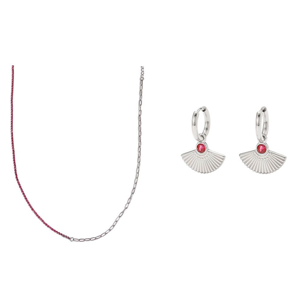 Ενα πολυτελές σετ με ένα κολιέ, ένα ζευγάρι σκουλαρίκια και ένα κουτί δώρου! Ιδανικό για κάθε γυναίκα που θέλει να νιώθει κομψή και εκλεπτυσμένη. Υλικό: Ατσάλι