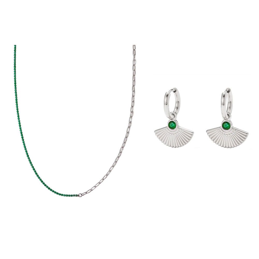 Ενα πολυτελές σετ με ένα κολιέ, ένα ζευγάρι σκουλαρίκια και ένα κουτί δώρου! Ιδανικό για κάθε γυναίκα που θέλει να νιώθει κομψή και εκλεπτυσμένη. Υλικό: Ατσάλι