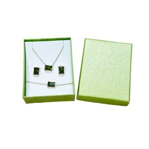 Ενα πολυτελές σετ με ένα βραχιόλι, ένα κολιέ, ένα ζευγάρι σκουλαρίκια και ένα κουτί δώρου! Ιδανικό για κάθε γυναίκα που θέλει να νιώθει κομψή και εκλεπτυσμένη.   Υλικό: Ατσάλι