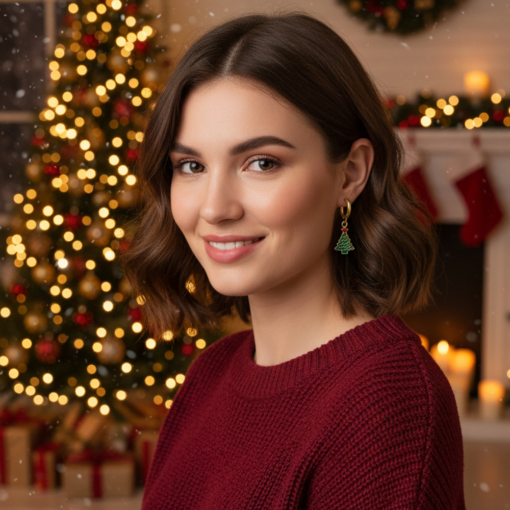 Γιορτινά ατσάλινα σκουλαρίκια με σχέδιο χριστουγεννιάτικου δέντρου, ιδανικά για να προσθέσουν μια χαρούμενη πινελιά στις γιορτινές σας εμφανίσεις. Κατασκευασμένα από ανθεκτικό ανοξείδωτο ατσάλι με πράσινες και κόκκινες λεπτομέρειες σμάλτου. Ελαφριά και άνετα για καθημερινή ή βραδινή χρήση.