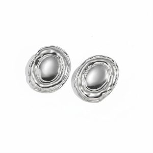 Ατσάλινα Σκουλαρίκια Κυματιστό Οβάλ Ασημί ΧρώμαA3813B