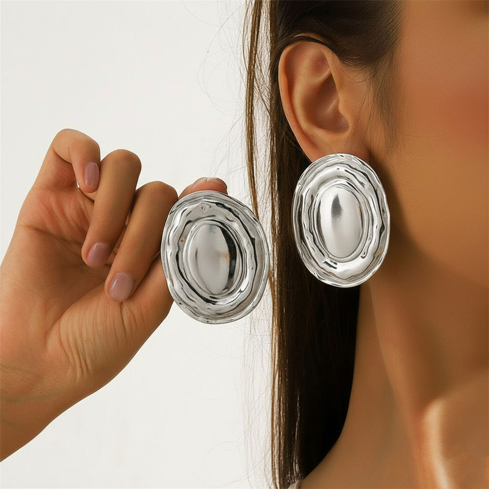 Μοντέρνα σκουλαρίκια από ανοξείδωτο ατσάλι με εντυπωσιακό οβάλ, κυματιστό σχέδιο που προσδίδει δυναμικό χαρακτήρα σε κάθε εμφάνιση. Το sculpted φινίρισμα δημιουργεί αίσθηση κοσμήματος υψηλής αισθητικής, ενώ το άνετο μέγεθος τους τα καθιστά ιδανικά τόσο για καθημερινή χρήση όσο και για πιο ιδιαίτερες εξόδους. Ένα statement αξεσουάρ που ξεχωρίζει χωρίς υπερβολές.
