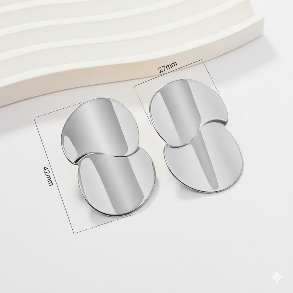 Κομψά σκουλαρίκια με διπλό γεωμετρικό σχέδιο και γυαλιστερή επιφάνεια, που προσφέρουν μοντέρνο και δυναμικό χαρακτήρα. Ιδανική επιλογή για minimal αλλά statement εμφανίσεις, από το πρωί έως το βράδυ.