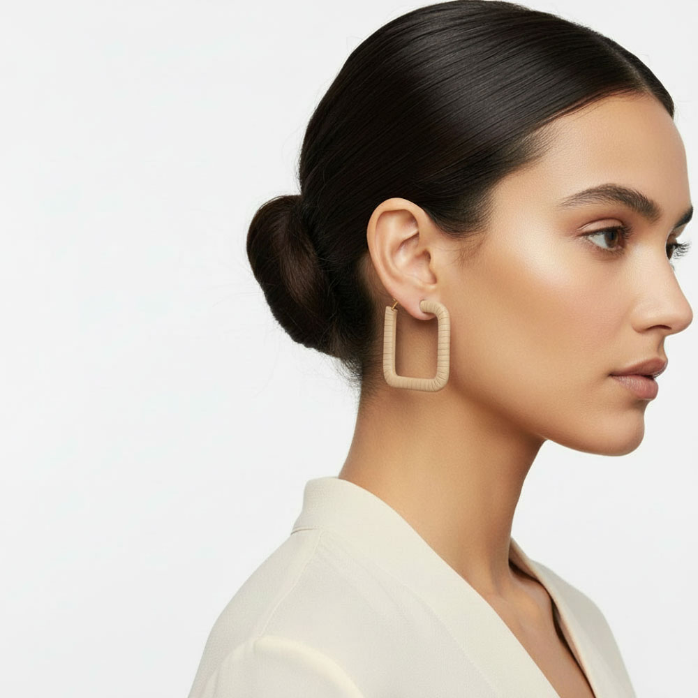 Μοντέρνα τετράγωνα σκουλαρίκια σε μπεζ απόχρωση, με καθαρό και minimal σχεδιασμό που προσθέτει κομψότητα και διακριτικό statement ύφος. Με διάσταση 4 cm, προσφέρουν εντυπωσιακή αλλά ισορροπημένη εμφάνιση, ενώ η ελαφριά κατασκευή τους τα καθιστά άνετα για καθημερινή χρήση.Ιδανικά για όσες αγαπούν μοντέρνα, γεωμετρικά αξεσουάρ και θέλουν ένα κομμάτι που ταιριάζει εύκολα με κάθε outfit.