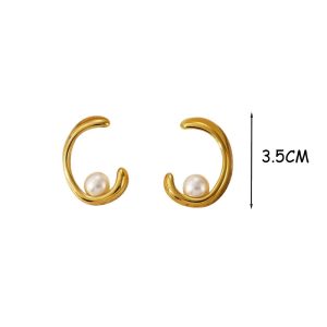 Ατσάλινα Χρυσά Σκουλαρίκια Ημικύκλιο με Πέρλα