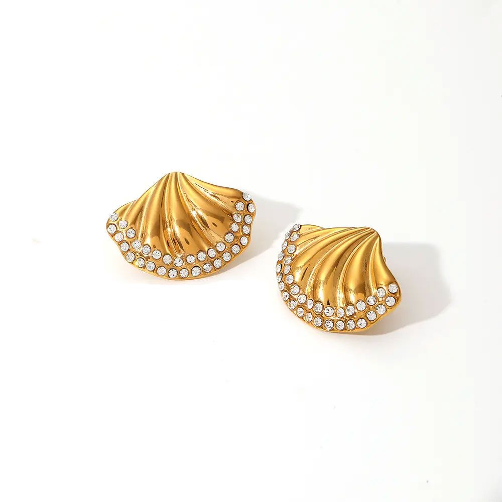 Γυναικεία κομψα σκουλαρίκια , για όλες τις ώρες και τις περιστάσεις της ημέρας. Υλικό:Ατσάλι Σχήμα Κοχύλι Με Στρας