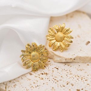 Σκουλαρίκια από ανοξείδωτο ατσάλι με ανάγλυφο σχέδιο λουλουδιού και λεπτομέρειες που προσδίδουν βάθος και υφή. Η οργανική τους φόρμα και το sculpted τελείωμα δημιουργούν ένα κομψό και διαχρονικό αποτέλεσμα, ιδανικό για να ολοκληρώσει κάθε εμφάνιση με φυσική κομψότητα. Ελαφριά και άνετα στο αυτί, φοριούνται εύκολα από το πρωί έως το βράδυ, προσθέτοντας διακριτικό χαρακτήρα και μοντέρνα αισθητική. Υλικό:Ατσάλι