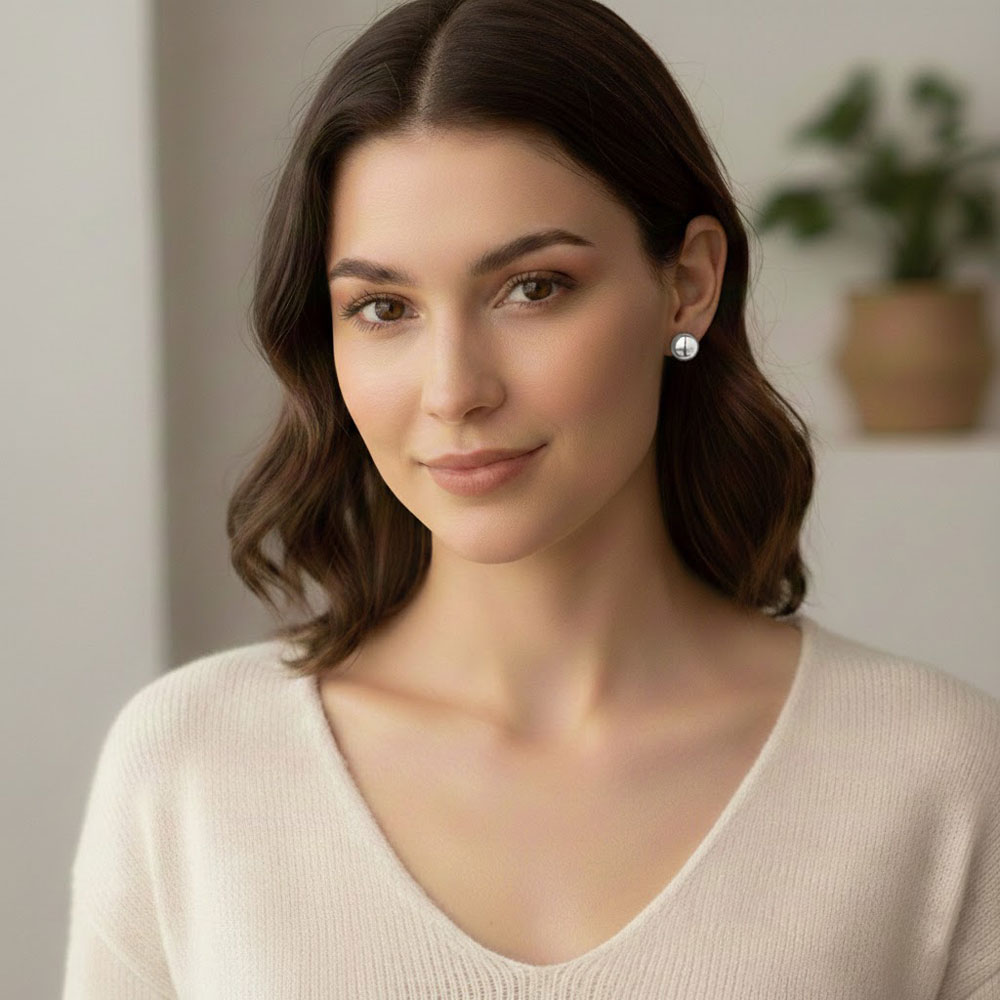 • Σκουλαρίκια Ατσάλι Μπίλια Διπλής Όψης ΑσημίA756B