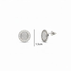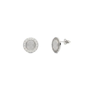 Εντυπωσιακά καρφωτά σκουλαρίκια από ατσάλι με περίτεχνο μαιανδρικό σχέδιο που πλαισιώνει τον διαχρονικό Δίσκο της Φαιστού. Με διάμετρο 1.5cm, συνδυάζουν ελληνική παράδοση και σύγχρονη κομψότητα, αποτελώντας ιδανική επιλογή για ξεχωριστές καθημερινές ή πιο elegant εμφανίσεις.