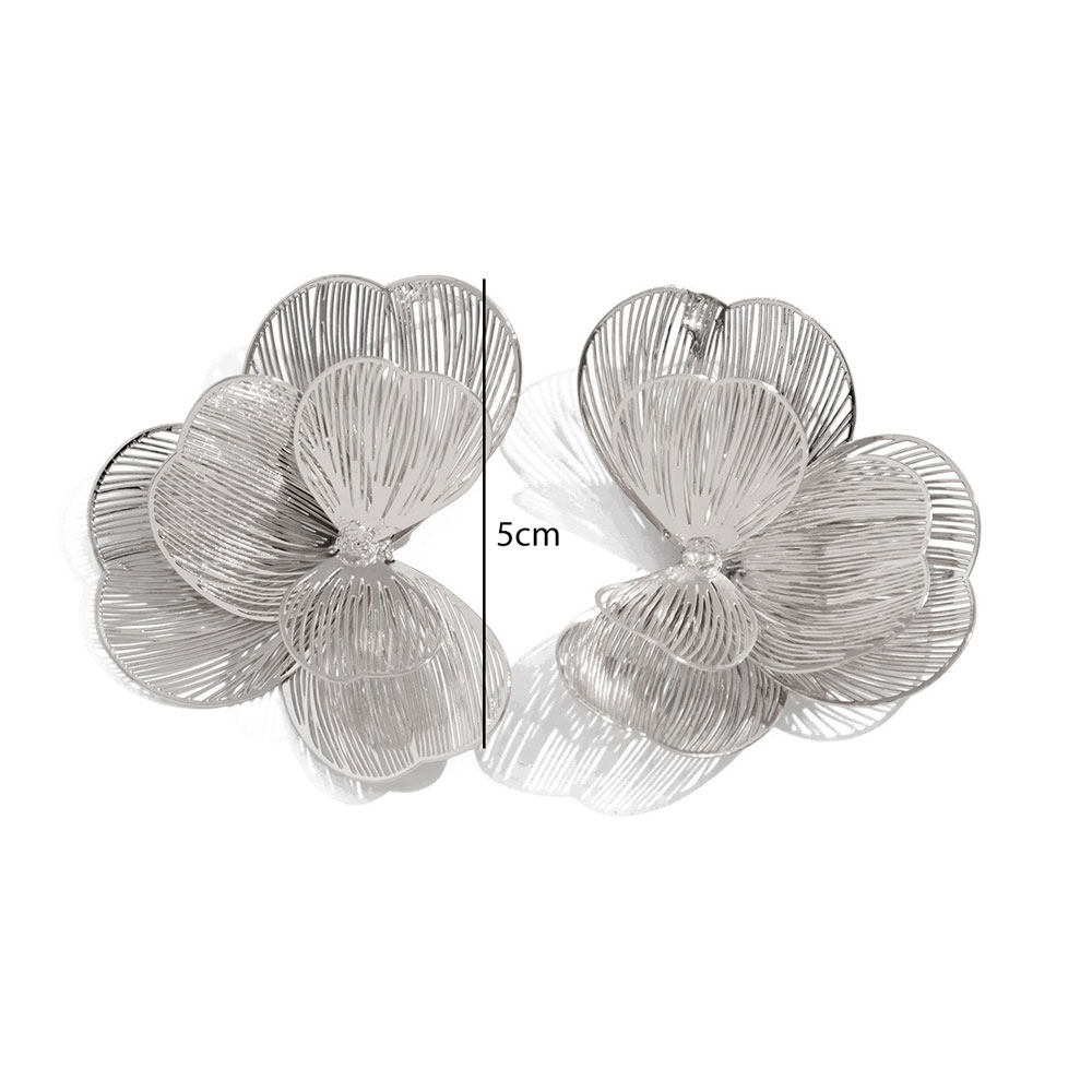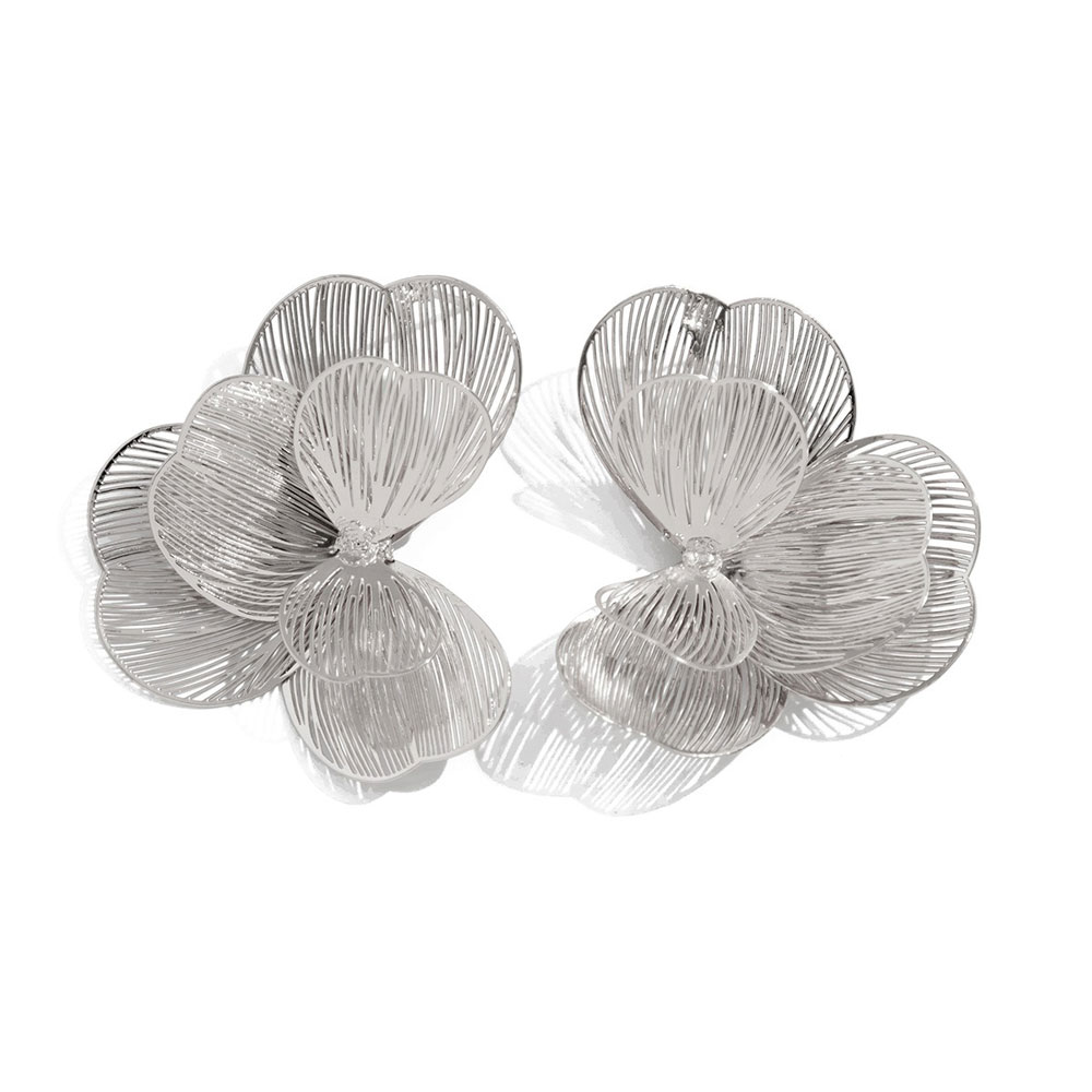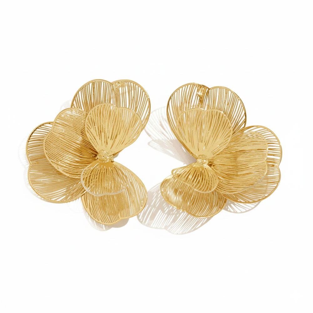 Εντυπωσιακά σκουλαρίκια σε μεταλλικό σχέδιο λουλουδιού με λεπτές, ανάλαφρες γραμμές που δημιουργούν κομψή αίσθηση κίνησης. Το oversized μέγεθος (5cm) τα κάνει ιδανικά για statement εμφανίσεις, ενώ το ελαφρύ τους υλικό εξασφαλίζει άνετη εφαρμογή. Ιδανικά για ιδιαίτερες περιστάσεις αλλά και για να δώσουν χαρακτήρα σε ένα minimal look, προσθέτοντας μοντέρνα και θηλυκή πινελιά σε κάθε σύνολο.