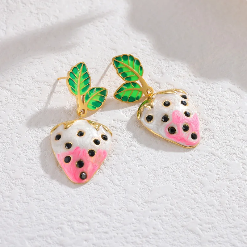 Γυναικεία κομψά σκουλαρίκια  Φράουλα σε ροζ-λευκό χρώμα,για μοναδικές εμφανίσεις