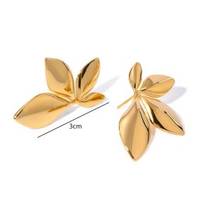 Εντυπωσιακά σκουλαρίκια από ανοξείδωτο ατσάλι σε κομψό σχέδιο φύλλων που αγκαλιάζει διακριτικά το αυτί. Με γυαλιστερό φινίρισμα και ανάλαφρη κατασκευή, προσθέτουν μια elegant, φυσική νότα σε κάθε εμφάνιση. Δεν μαυρίζουν και δεν προκαλούν αλλεργίες, ιδανικά για καθημερινή χρήση αλλά και πιο ιδιαίτερες στιγμές.
