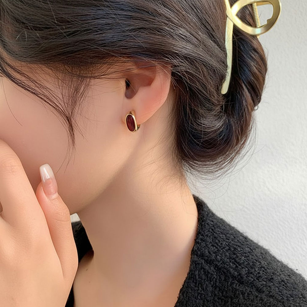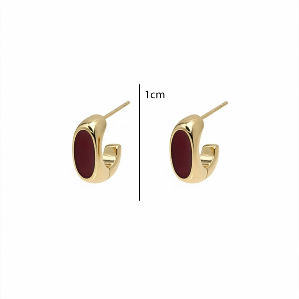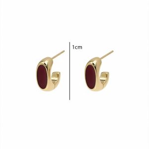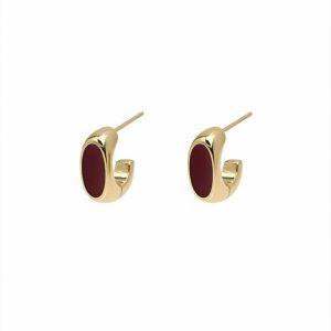 Ατσάλινα Σκουλαρίκια Καρφωτά με Οβάλ Στοιχείο Χρυσό Μπορντό Χρώμα