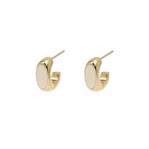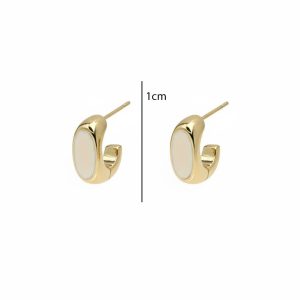 Ατσάλινα Σκουλαρίκια Καρφωτά με Οβάλ Στοιχείο Χρυσό Κρεμ Χρώμα