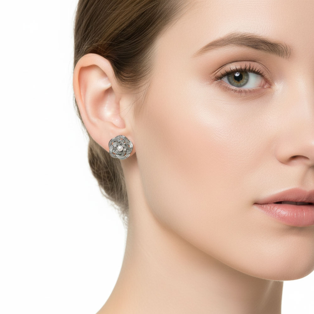 • Σκουλαρίκια από Ατσάλι σε Πλεκτό Σχέδιο Λουλουδιού με ΠέρλαA35033
