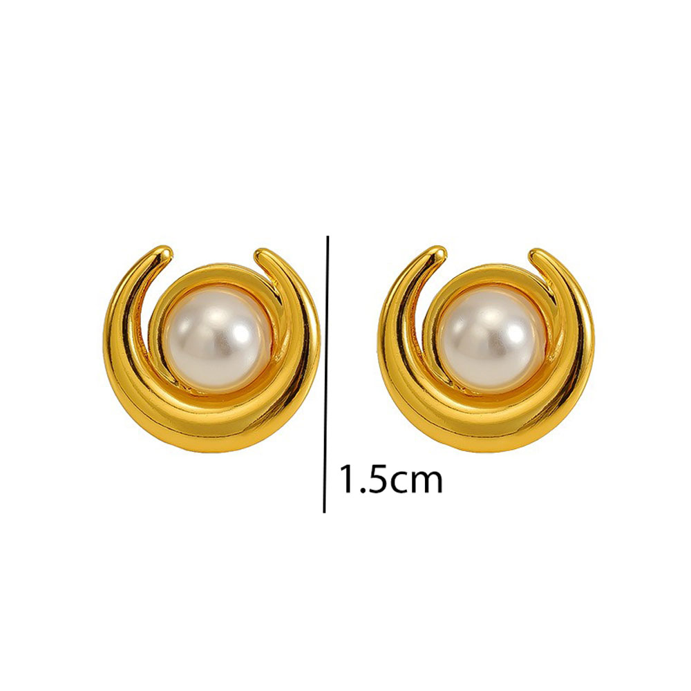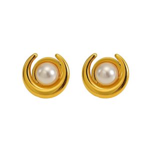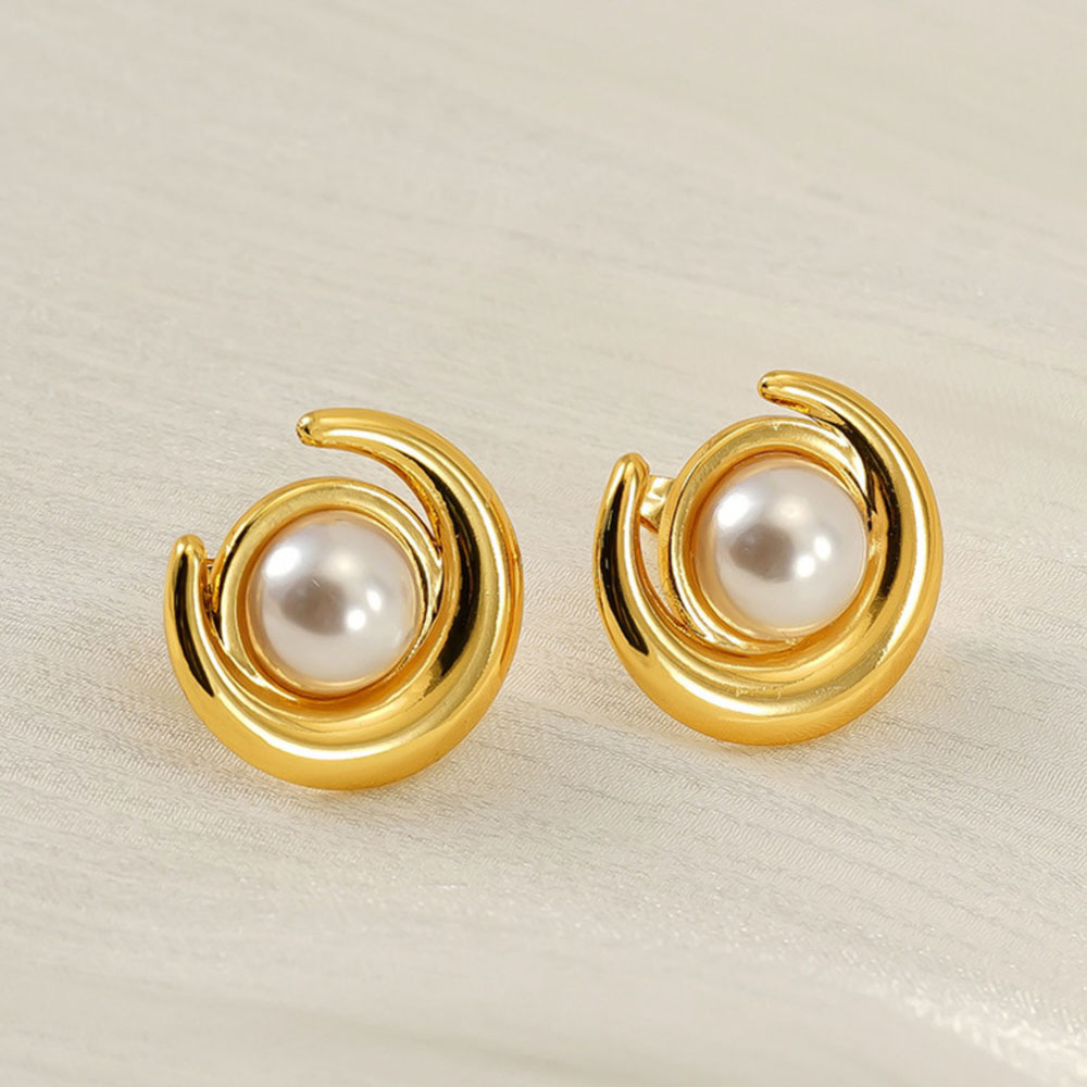 Κομψά σκουλαρίκια από ανοξείδωτο ατσάλι σε χρυσή απόχρωση, με καμπύλο, μοντέρνο σχεδιασμό που “αγκαλιάζει” μία λευκή πέρλα στο κέντρο. Ο κομψός και ταυτόχρονα μίνιμαλ χαρακτήρας τους τα καθιστά ιδανικά για καθημερινές εμφανίσεις αλλά και πιο επίσημες στιγμές, προσφέροντας διακριτική λάμψη και θηλυκή κομψότητα. Ελαφριά και άνετα στο αυτί, αποτελούν ένα διαχρονικό αξεσουάρ που ταιριάζει εύκολα σε κάθε στιλ.
