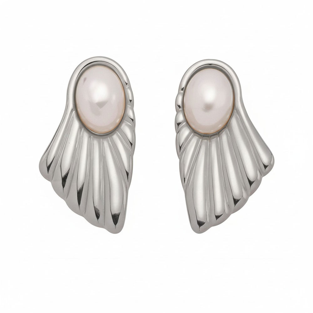 Κομψά σκουλαρίκια από ανοξείδωτο ατσάλι με εντυπωσιακή οβάλ πέρλα και ανάγλυφο μεταλλικό σχέδιο που θυμίζει κύμα ή φτερό. Το sculptural περίγραμμα προσδίδει μοντέρνα και elegant αισθητική, αναβαθμίζοντας κάθε σύνολο.Ελαφριά και άνετα για πολύωρη χρήση, αποτελούν ιδανική επιλογή για minimal αλλά και πιο εντυπωσιακές εμφανίσεις. Προσθέτουν διακριτική πολυτέλεια και φωτεινότητα στο πρόσωπο, συνοδεύοντας αρμονικά καθημερινά ή βραδινά looks.